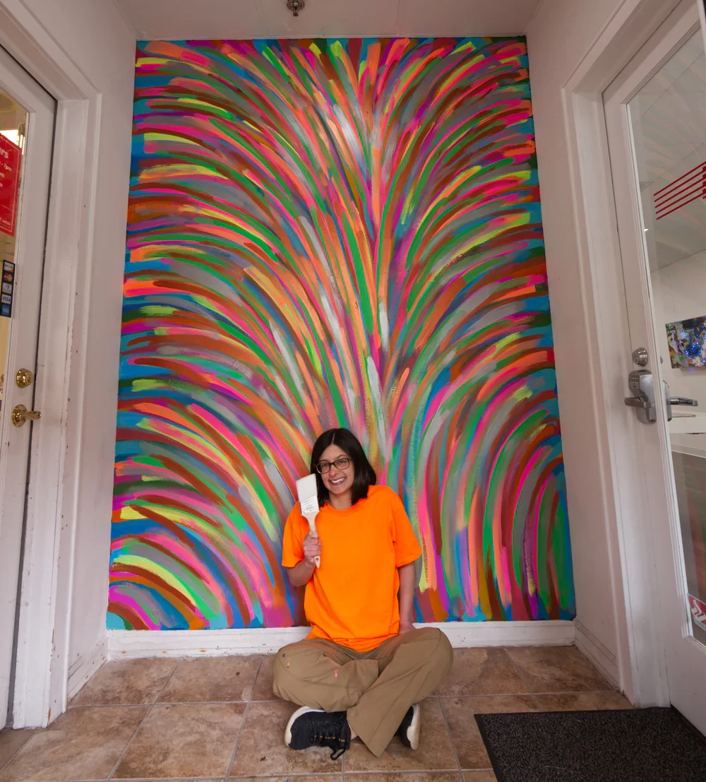 After being diagnosed with Chronic Lyme Disease in 2022, Sophie recognized that healing takes place at the cellular level. Fascinated by mast cells, spike proteins, and the shapes and patterns of nerve bundles, Sophie’s current body of work consists of various micro-environments filled with bright colors and repetitive mark making.